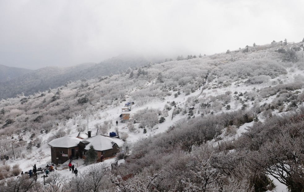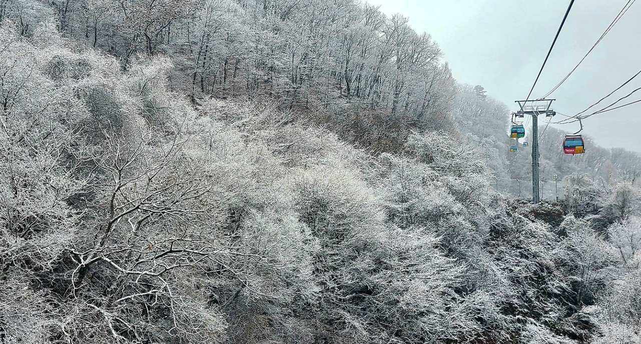 곤돌라를 이용하면 설천봉까지 쉽게 오를 수 있어 초보자도 도전 가능한 겨울 눈꽃 산행지입니다. 눈꽃 시즌에는 아이젠 준비가 필요합니다.