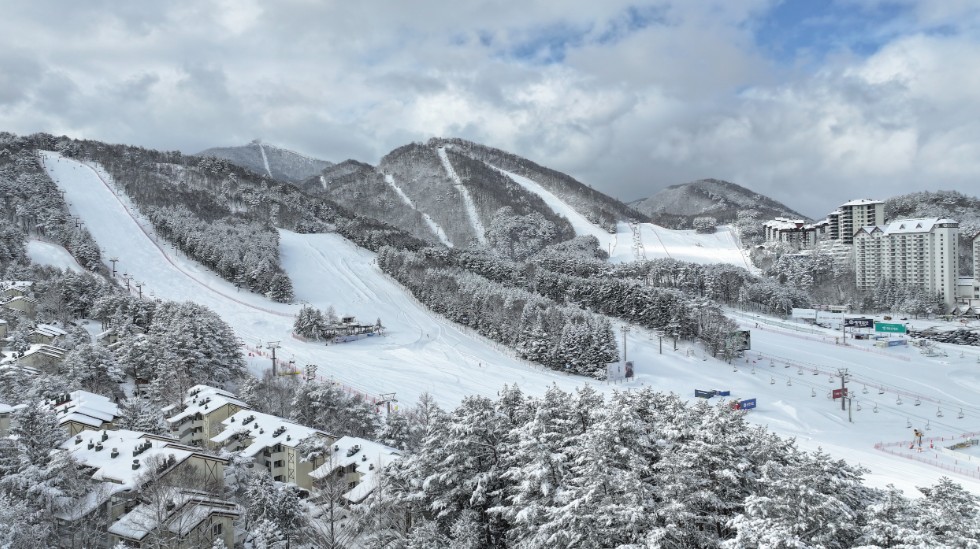 스키뿐 아니라 곤돌라를 타고 발왕산 정상에 오르면 겨울 산 풍경을 편하게 즐길 수 있습니다. 스키를 타지 않아도 만족도가 높습니다.
