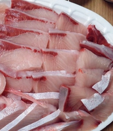 - 뱃살에 하얀 마블링이 균일하면 좋은 상태예요.